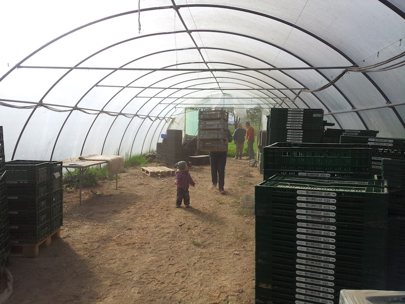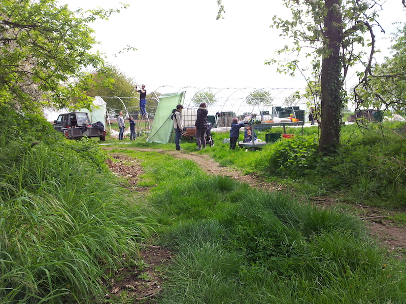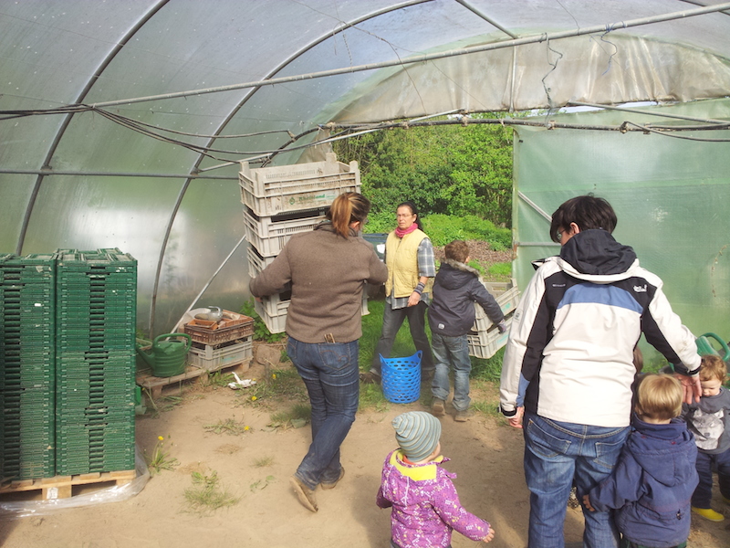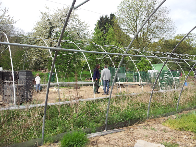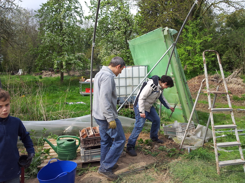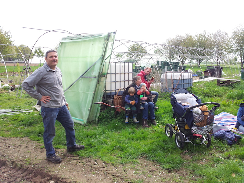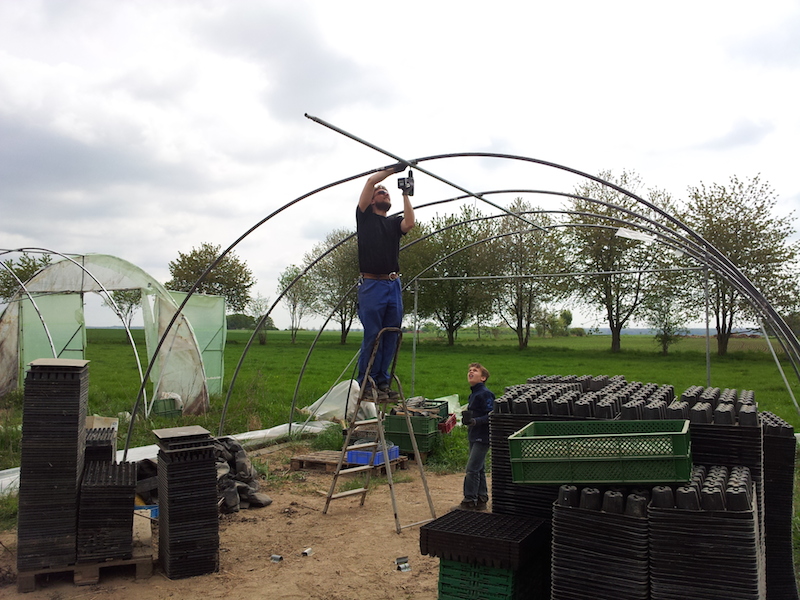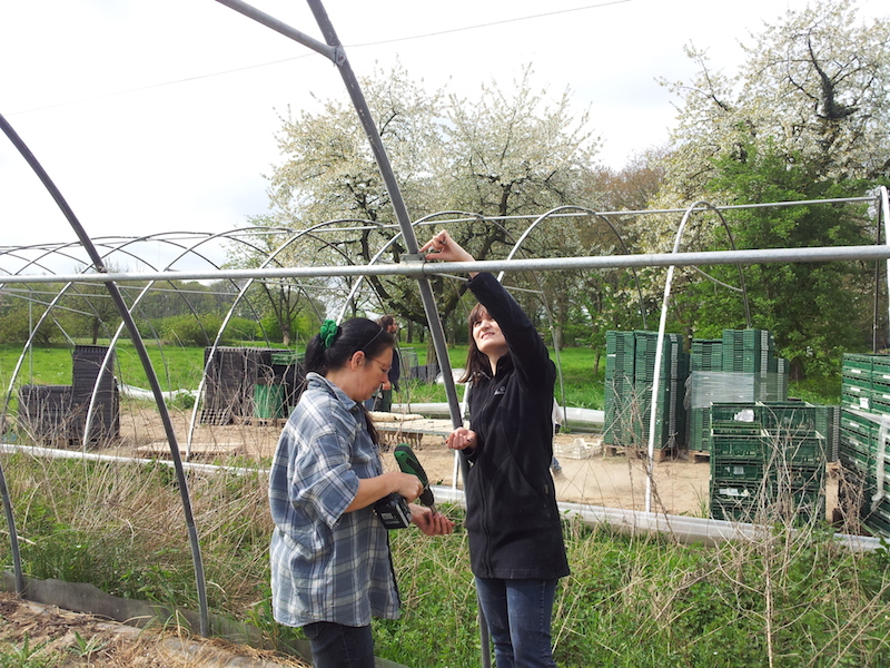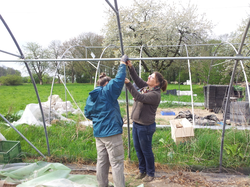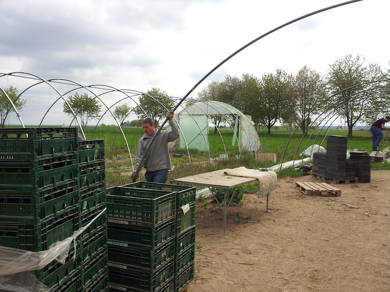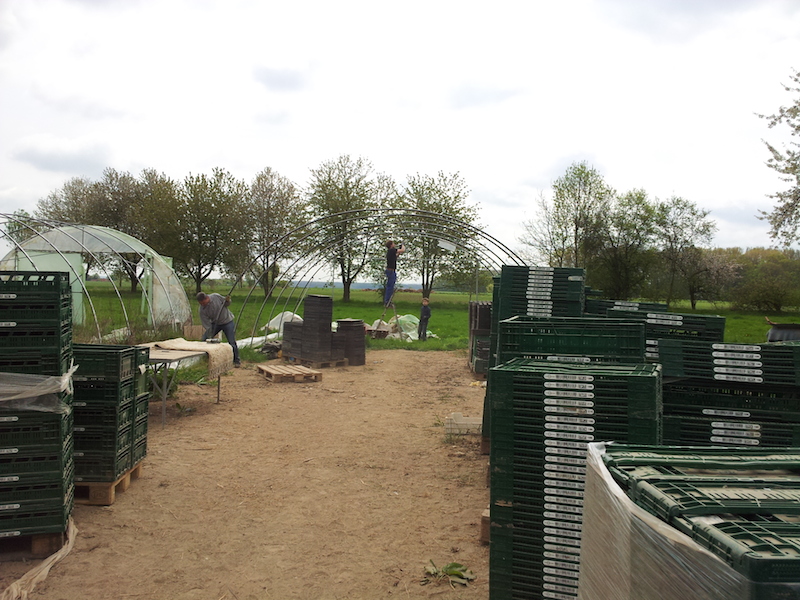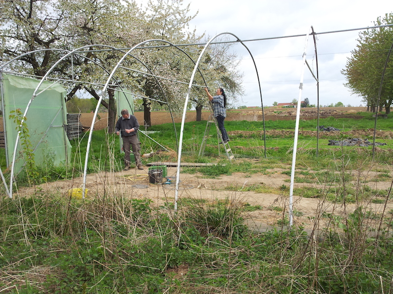 Bei sonnig bis bewölktem Wetter halfen 22 Erwachsene und 8 Kinder beim Abbau von zwei großen Folientunneln samt Bewässerungssystem, dem Verladen von Sandsäcken, Folien, Netzen, Schubkarren und Pikierkästen – die allesamt von der solidarischen Hofgemeinschaft angekauft wurden.