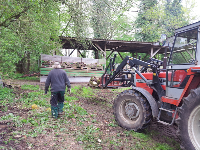Am Tag der Arbeit, dem 1. Mai, und dem darauffolgenden Samstag, 2. Mai, trafen sich Mitglieder der Solawi-Gruppe um 9.00 Uhr am Vauß-Hof zur gemeinsamen Abfahrt zum Arbeitseinsatz. Ziel war der nahegelegene Gärtnerhof Glahe in Salzkotten-Verne, dessen Betrieb eingestellt und dessen Bestand vollständig aufgelöst wurde.