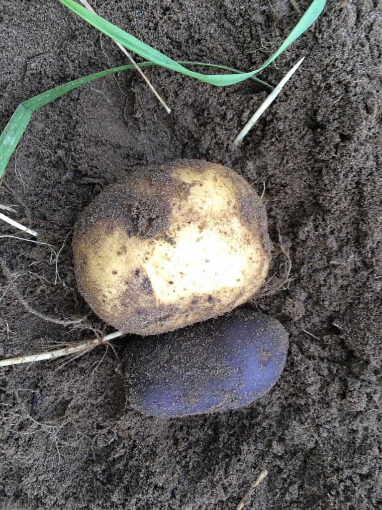 Insgesamt durchliefen an diesem Tag 2,2 Tonnen Kartoffeln die Sortiermaschine. Pro angemeldetem Ernteanteil umfasst der Ertrag 20 kg Elfe, 2,5 kg Blauer Schwede sowie 5 kg Agria – plus einen noch unbekannten Anteil der Sorte Gunda, die am 10. Oktober abschließend sortiert, verpackt und ausgewogen wird.