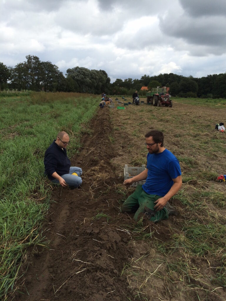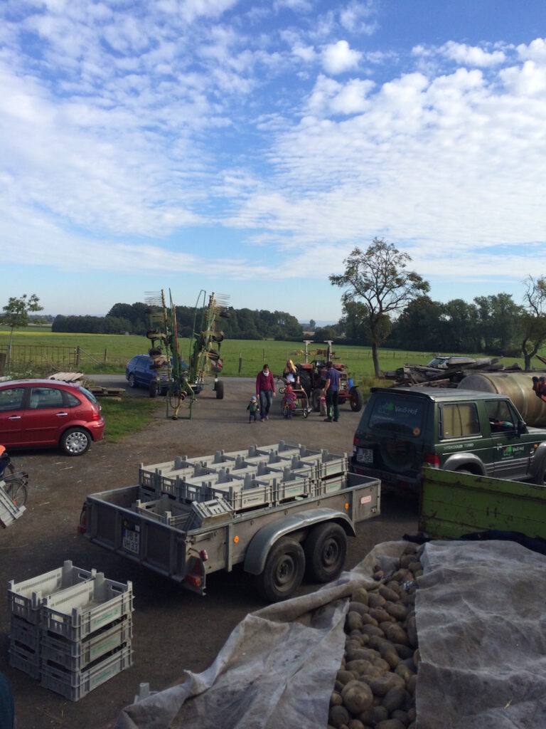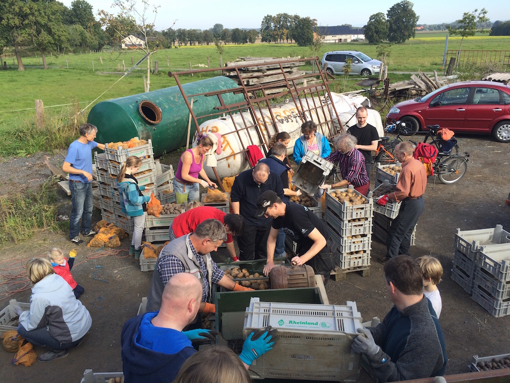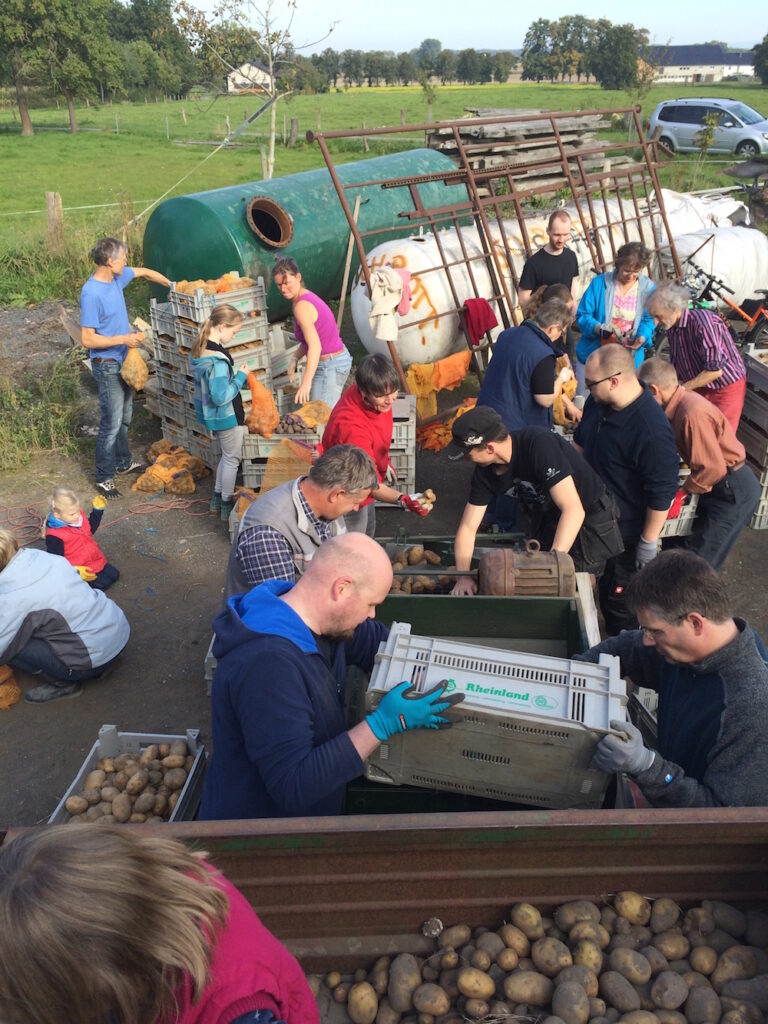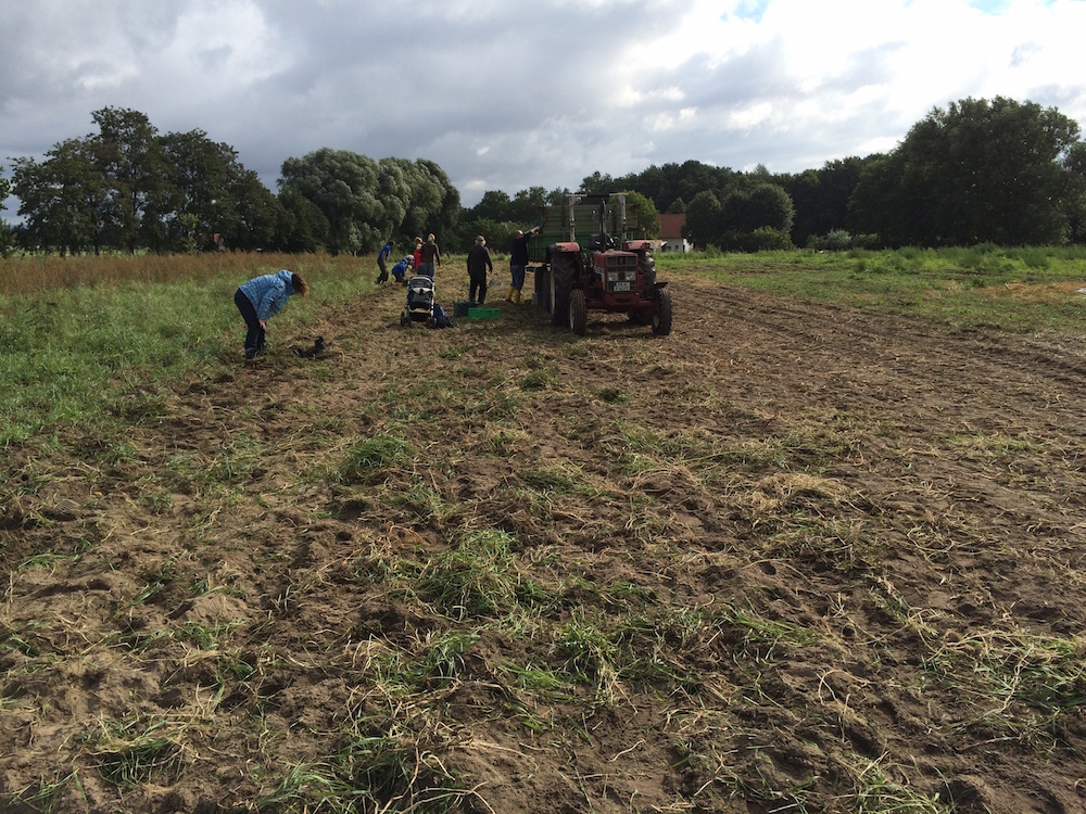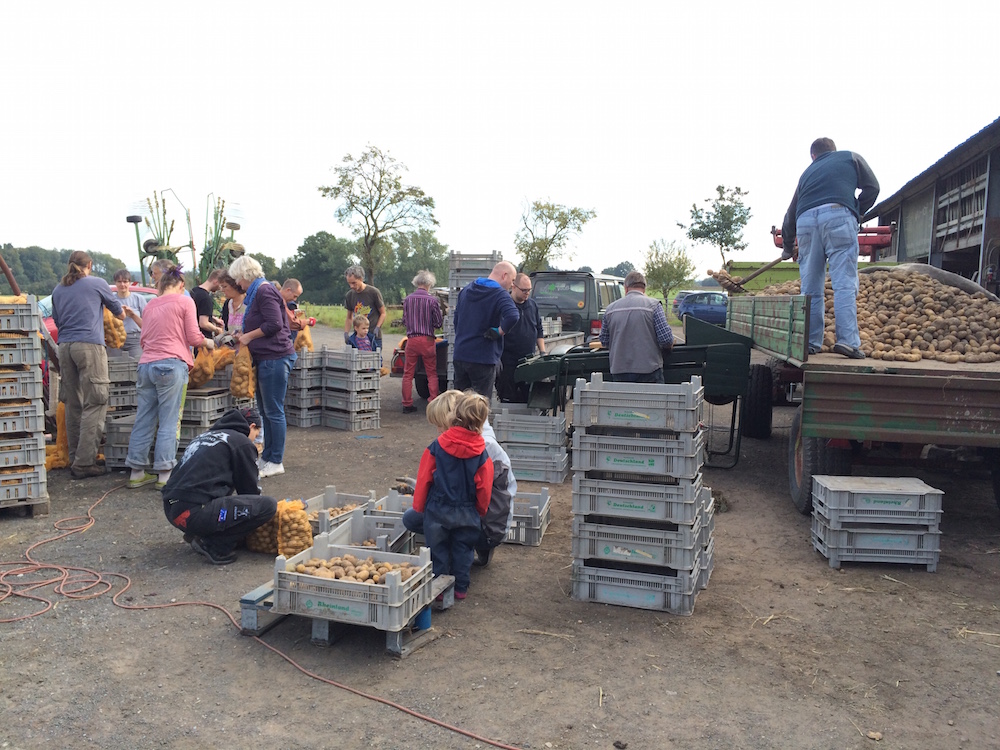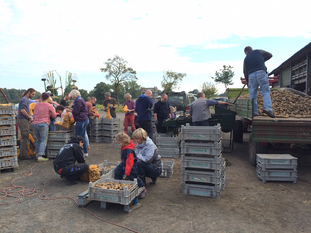 Da der Vauß-Hof (noch) nicht über frostfreie Lagerkapazitäten verfügt, muss in diesem Jahr ein Großteil der Kartoffeln bereits jetzt an die AnteilszeichnerInnen ausgegeben werden. Die Verteilung wird ebenfalls am Samstag, den 10. Oktober, an der Maschinenhalle am Delbrücker Weg stattfinden. Wer zu diesem Termin nicht zugegen sein kann, kann seinen Anteil zu einem anderen Zeitpunkt zum Einkellern abtransportieren.