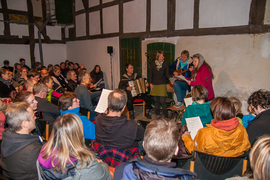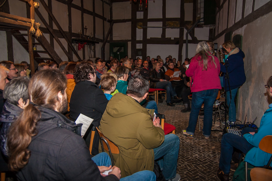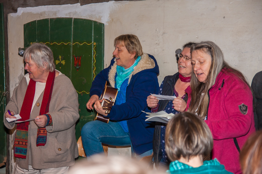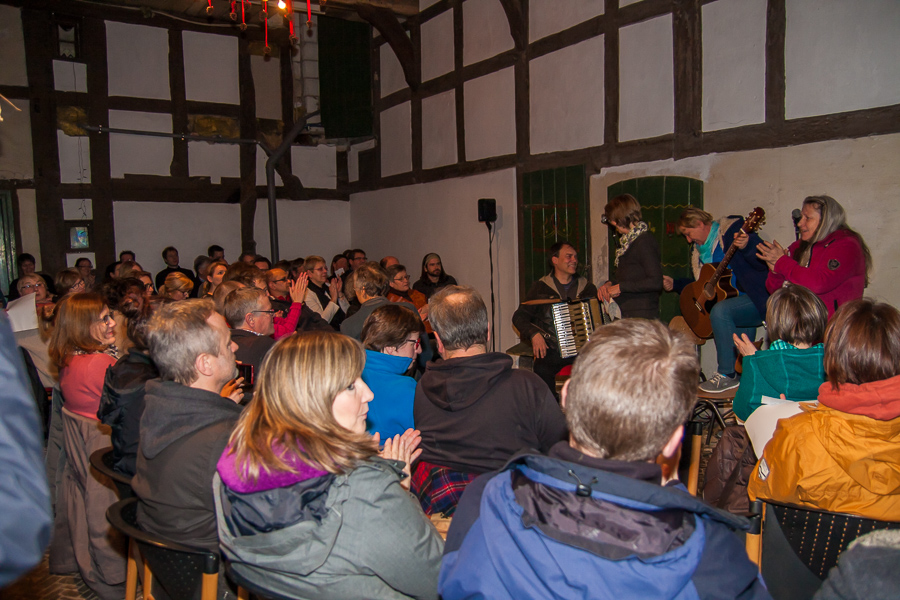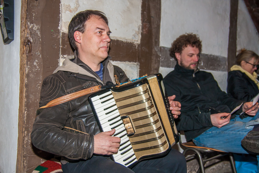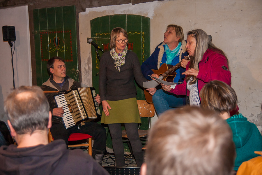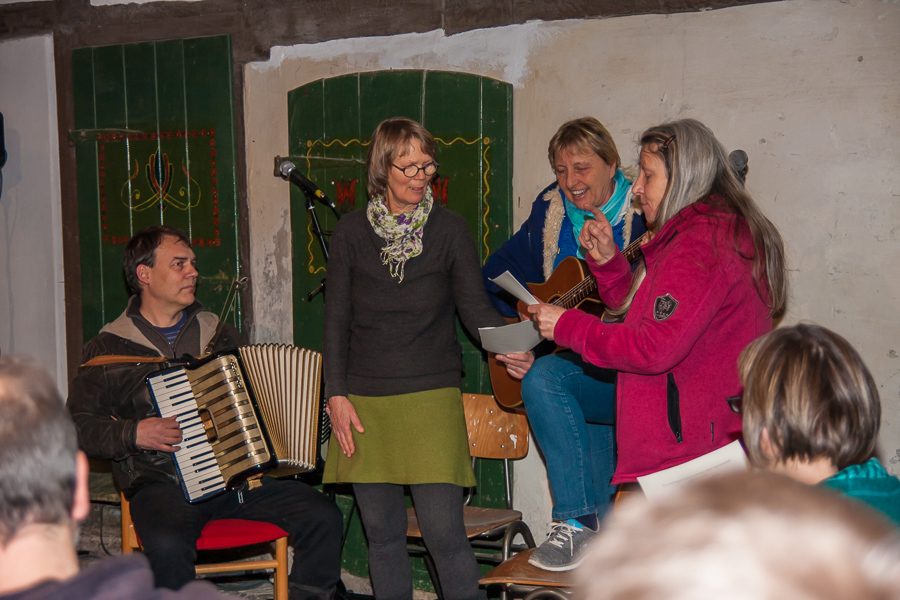 Eröffnet wurde das Treffen musikalisch. Zur Melodie von »Was sollen wir trinken« wurde ein SoLawi-Lied gesungen und von Ida Peitz, Viktoria Rosenberg, Elisabeth Stieler, Veronika Bitzan sowie Dagmar Gröblinghoff-Mulatsch an der Gitarre und Jürgen Gläsener am Akkordeon begleitet. Nach dieser Einstimmung startete die Sitzung in bester Laune in die Gründungssitzung und die Bieterrunden für das Jahr 2016.