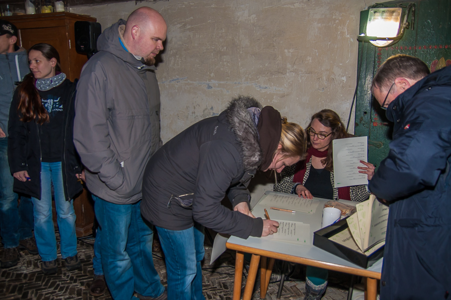 Da die benötigte Summe von 4.000 Euro in der ersten Runde nur knapp verfehlt wurde, fand eine zweite Bieterrunde statt, die ausgezählt wurde, während die Gründungsmitglieder ihre Unterschriften auf den Gründungsdokumenten leisteten.
