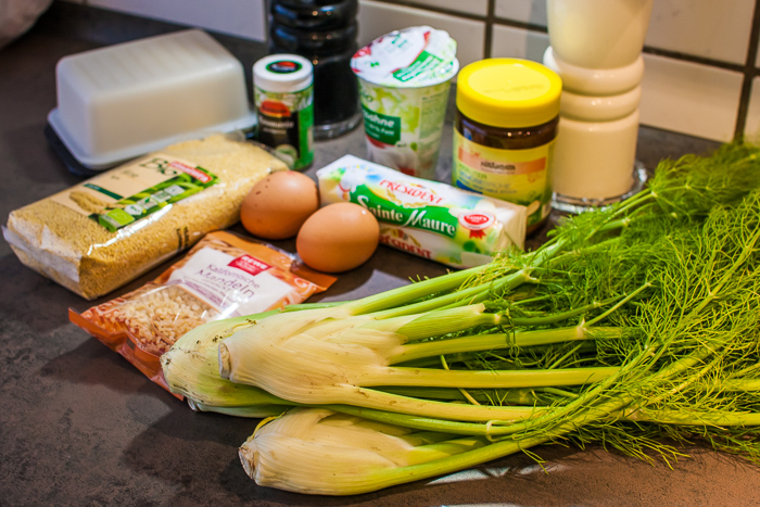Es gibt ja SoLawi-Mitglieder, die dachten, sie müssten jetzt anfangen Tee zu trinken – viel Tee –, und zwar Fenchel-Tee. Dass man aus Fenchel auch leckere Gerichte zaubern kann, zeigt euch dieses Rezept: